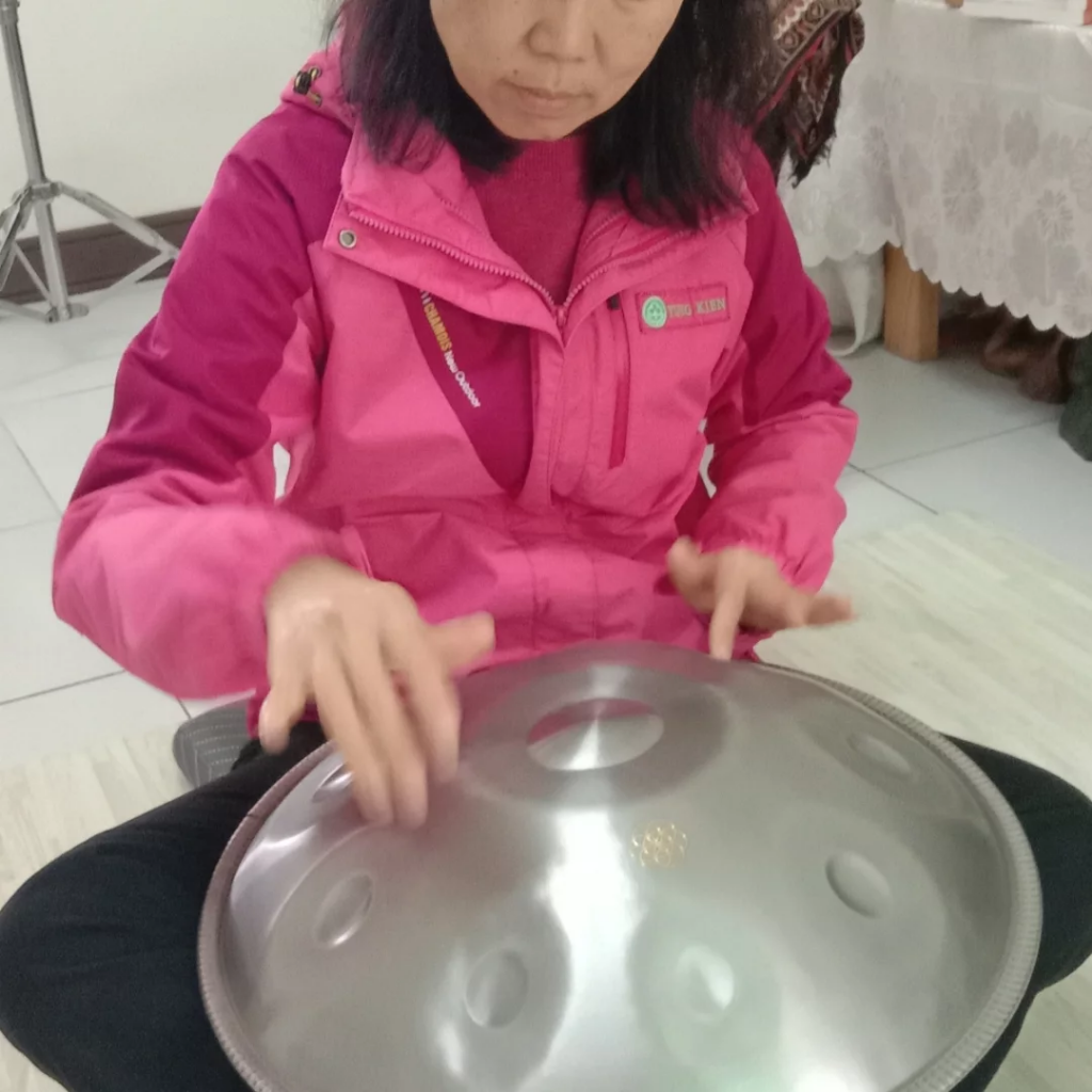 我在第一次遇見手碟,在2017/10/23世貿看畫展時,聽見美妙的聲音,完全被吸引,因為以前就很愛聆聽外星人的訊息,2018/11/3開始自己的手碟之旅,每天都彈奏至今,3月份帶著手碟去馬來西亞旅行,7月份辦了一場“我來地球旅行”畫展,畫展中展現聆聽手碟的創作與有手碟的藝術創作,用繪畫與手碟創作,與世人分享和諧與愛!